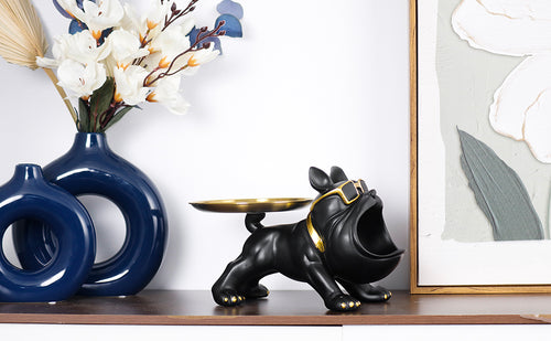 Breng karakter en functionaliteit samen in je interieur met dit charmante bulldog beeld. Met zijn opvallende uitstraling en handige opbergruimte is dit decoratiestuk niet alleen een vrolijke eyecatcher, maar ook een praktisch hulpje voor het bewaren van kleine spullen.